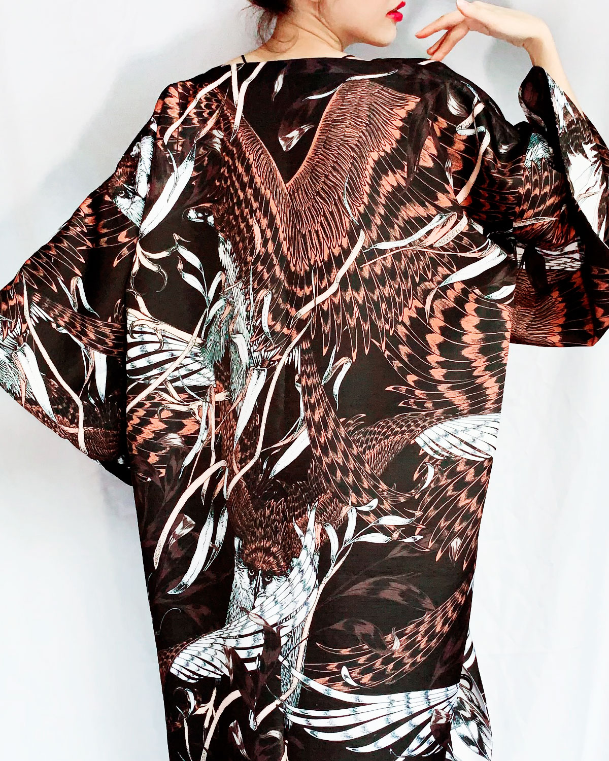 Philippine Eagle in Brown & Black - Reversible Kimono