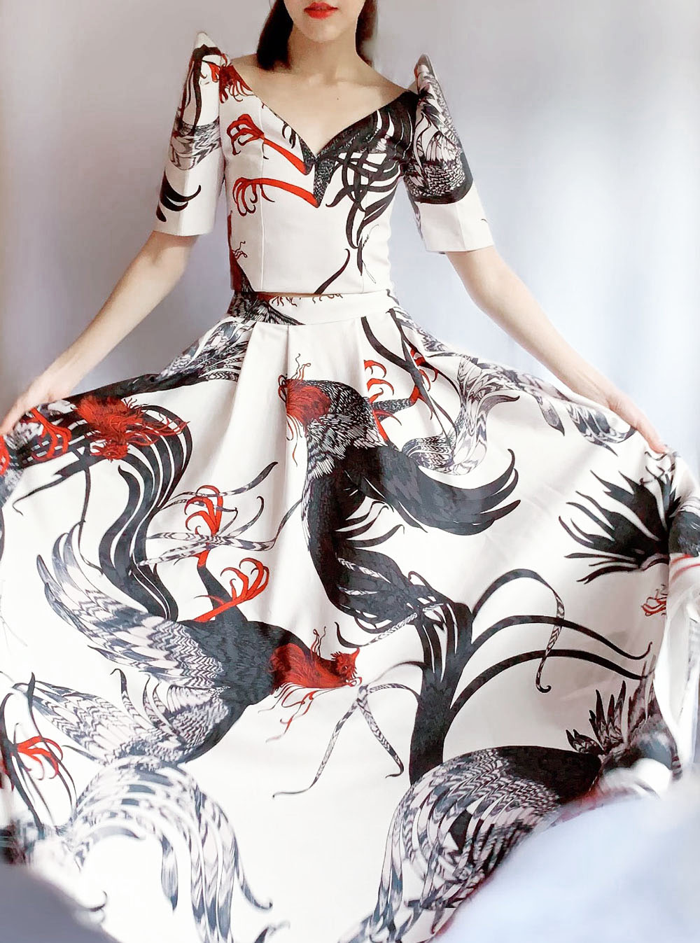 Philippine Eagle in Emerald - Reversible Kimono & Skirt