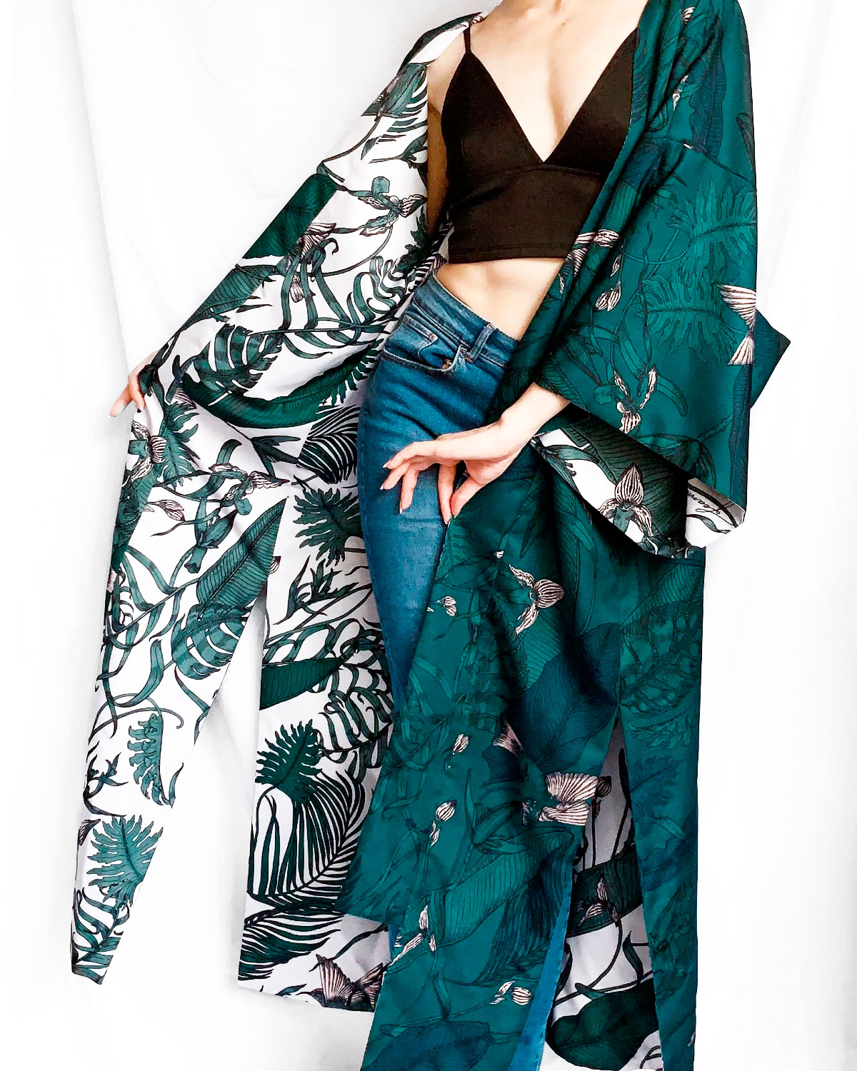 Tropical Foliage in Jade & Emerald - Reversible Kimono
