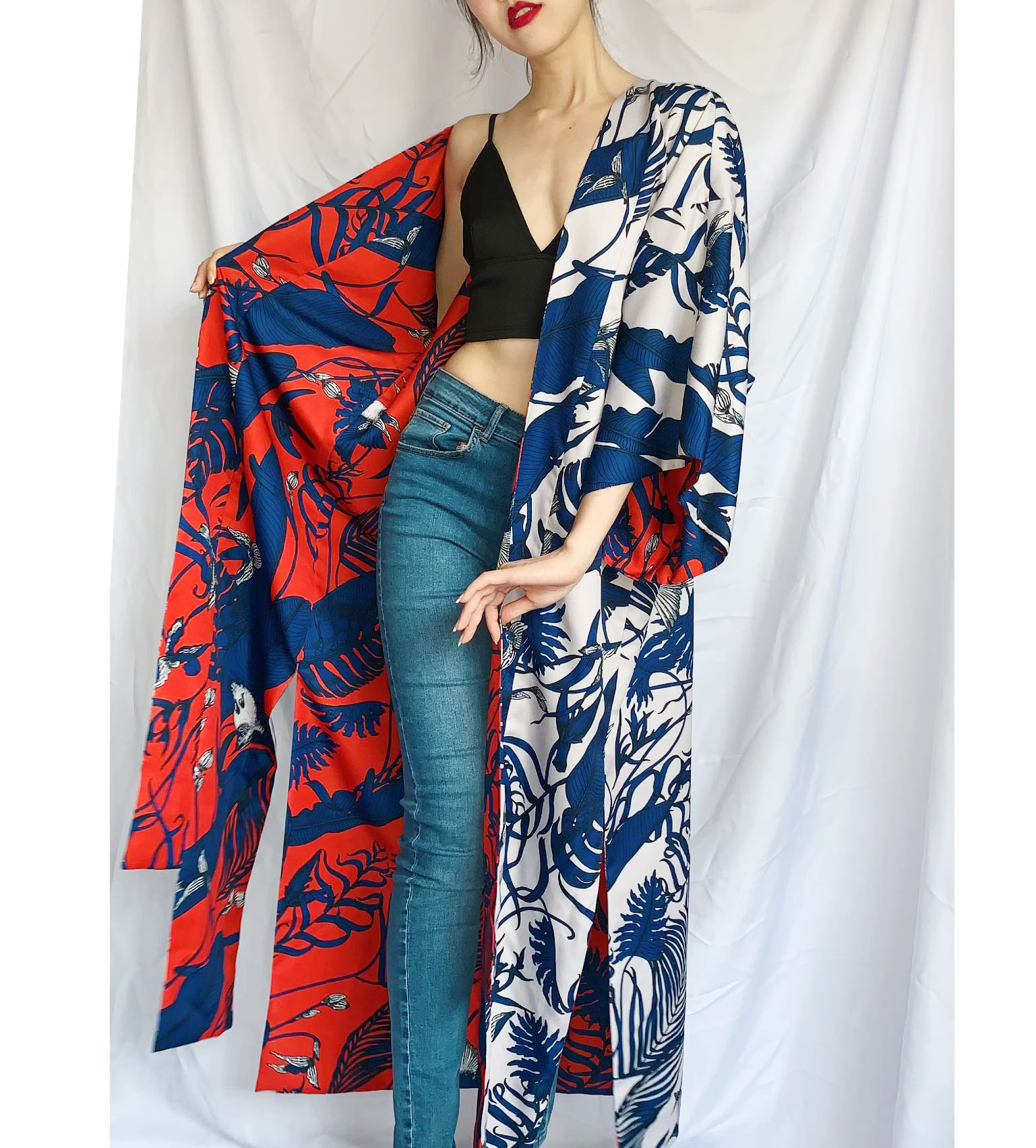 Tropical Foliage in Orange & Porcelain - Reversible Kimono
